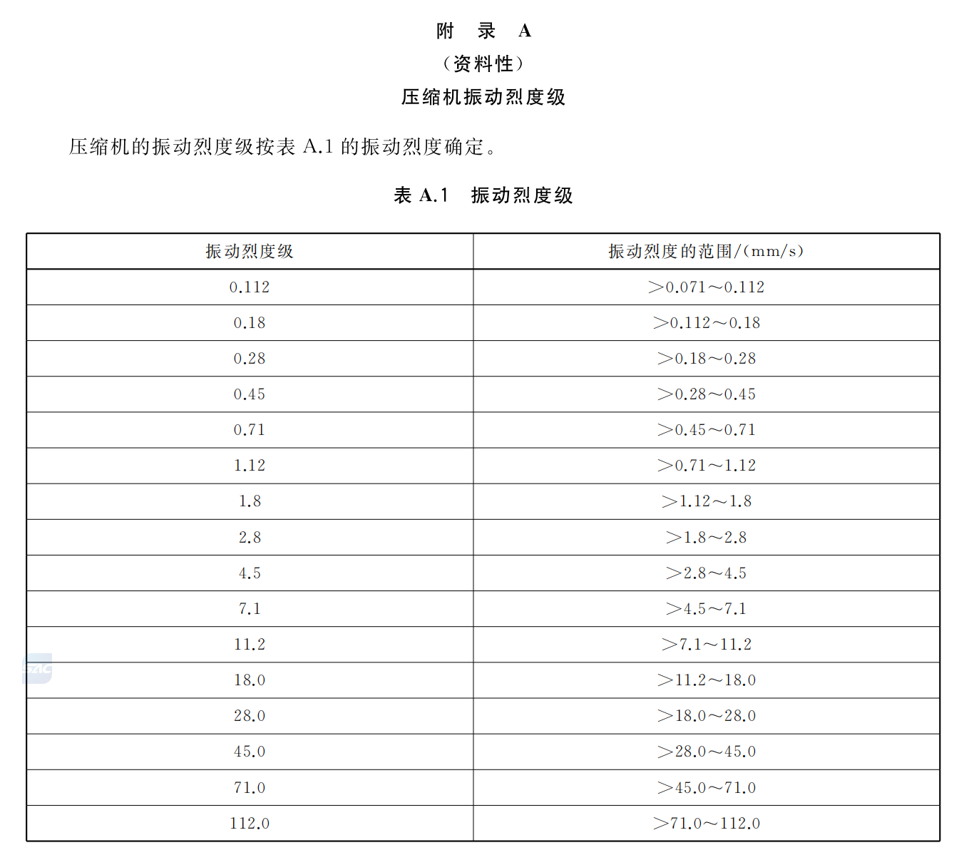5.3 壓縮機振動烈度級的確定見附錄A。