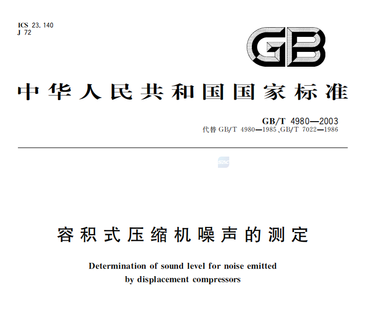 本標(biāo)準(zhǔn)代替GB/T 4980—1985《容積式壓縮機噪聲聲功率級的測定 工程法》和GB/T 7022一1986《容積式壓縮機噪聲聲功率級的測定 簡易法》。