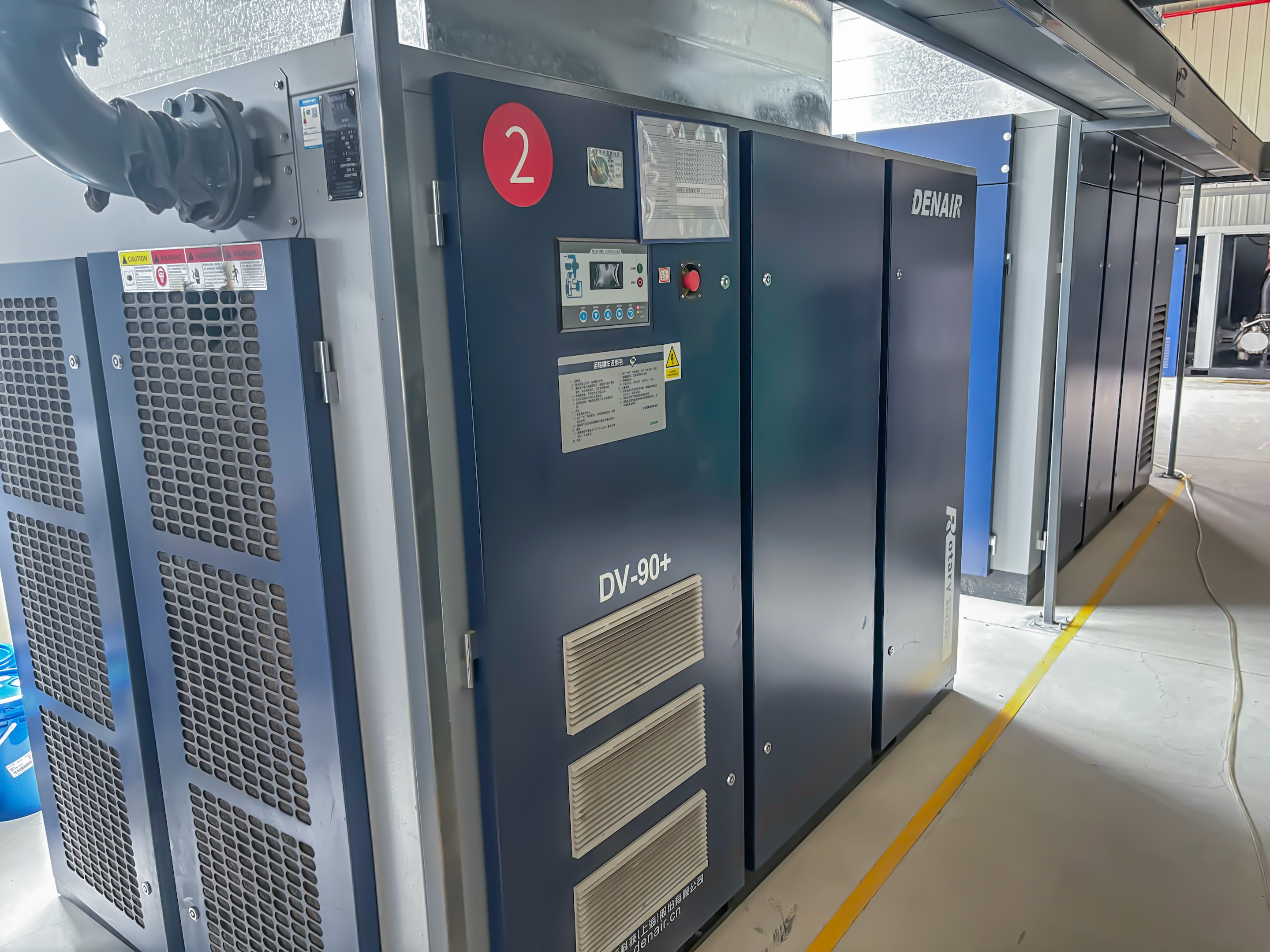 經(jīng)過技術(shù)篩選與實(shí)地測試,博邦山河引入德耐爾 DAV-75 和 DAV-90 + 兩款空壓機(jī)。DAV-90 + 作為主力機(jī)型,搭載大排量螺桿主機(jī),可穩(wěn)定輸出 0.8MPa 壓縮空氣,為結(jié)構(gòu)件焊接車間的多臺機(jī)械臂提供集中供氣,保障焊接質(zhì)量一致性。?