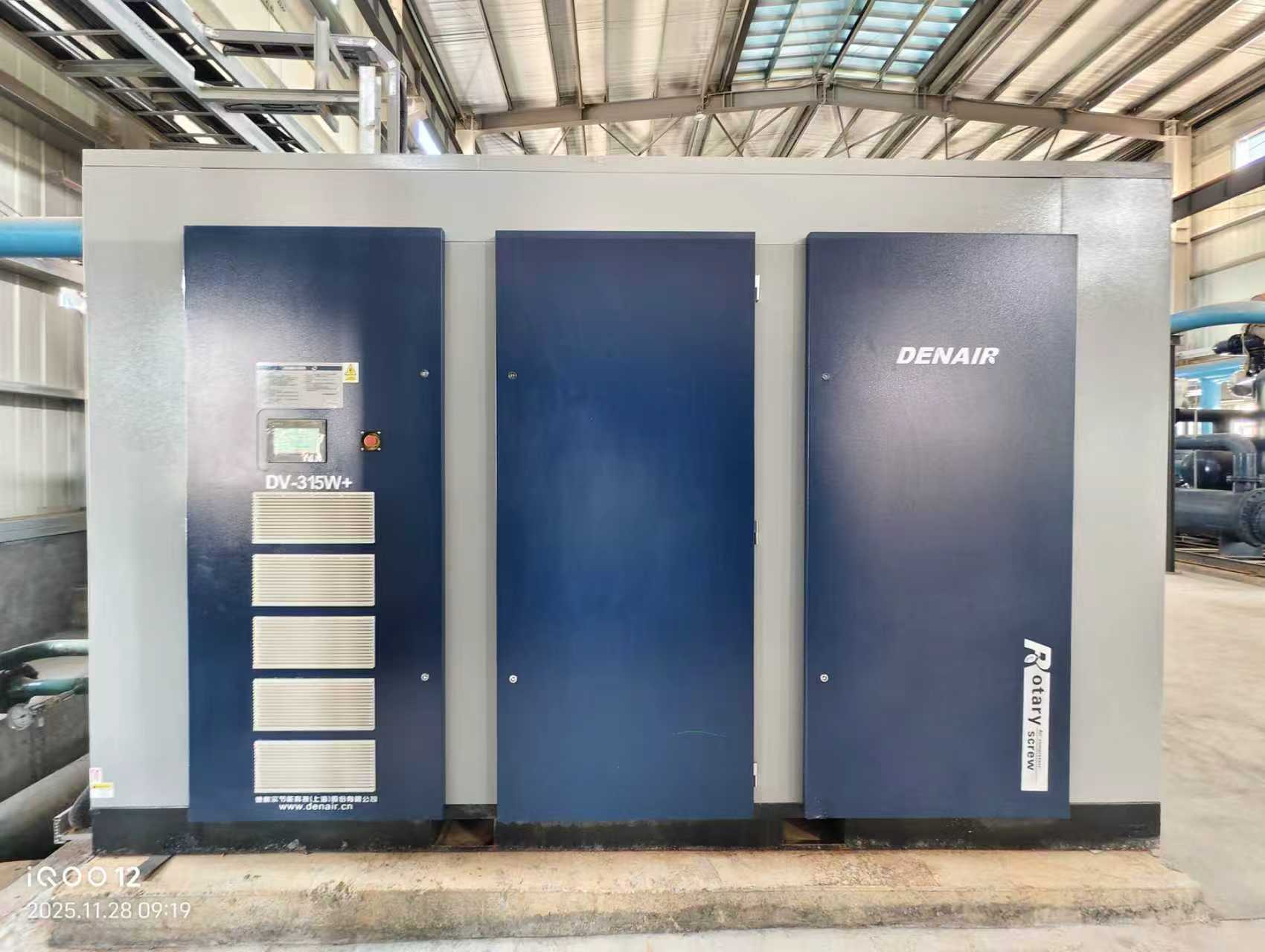 在得知項目需求后,德耐爾迅速組建專項團隊,深入生產(chǎn)基地,結(jié)合其工藝特點與產(chǎn)能規(guī)劃,量身定制了壓縮空氣系統(tǒng)解決方案 —— 包含4臺315KW一級能效螺桿空壓機與3 臺離心式空壓機,并配套完善的干燥、過濾及智能控制系統(tǒng)。